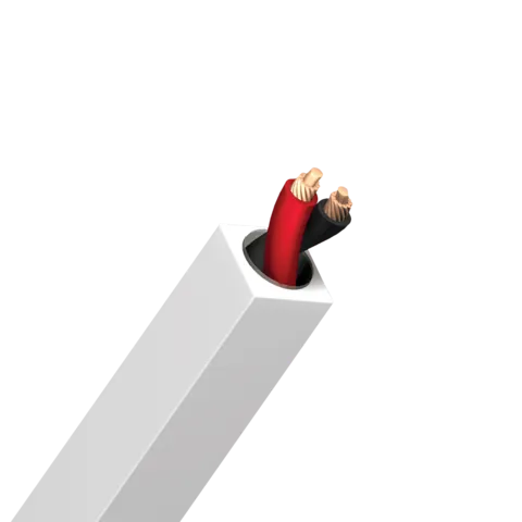 Q2 er en seriøs høyttalerkabel i kompakt, firkantet design. Den har gode lydmessige kvaliteter og er svært fleksibel, slik at den er enkel å trekke gjennom rør eller langs en gulvlist.