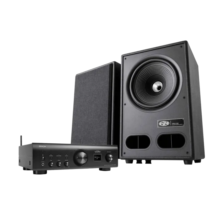 Denon PMA-900HNE og Vestlyd V12C-høyttalerne er et spesielt velspillende hi-fi musikkanlegg i full størrelse for deg som ønsker både massive lydopplevelser, livefølelse og superenkel trådløs tilgang til all verdens musikk på telefonen.