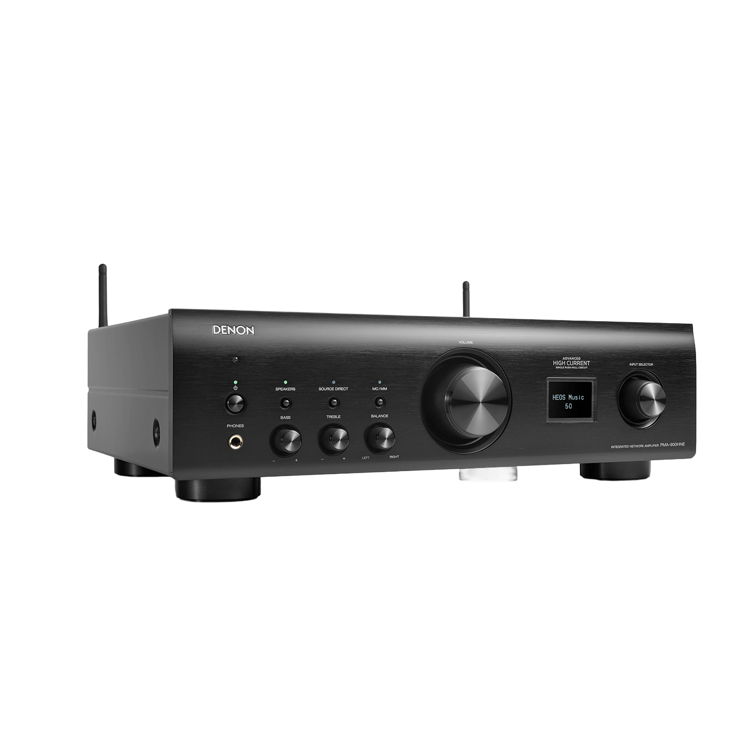 PMA-900HNE har Denons eget HEOS multirom streaming system integrert. Uten ekstra apparater kan du streame all verdens musikk fra musikktjenester og titusenvis av radiostasjoner på nettet. Alt er lett tilgjengelig på den dedikerte HEOS-appen. Ønsker du trådløs musikk i flere rom kan du også enkelt utvide systemet med så mange trådløse HEOS-høyttalere du vil.