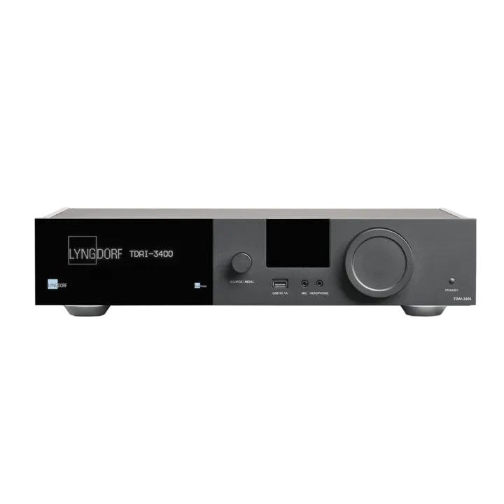 Lyngdorf TDAI-3400 fås i sort aluminiumsfinish. Modulutrustningen velger du ved kjøp, eller de kan ettermonteres. Prismessig er det dog en fordel å investere i alt du kommer til å trenge med én gang.