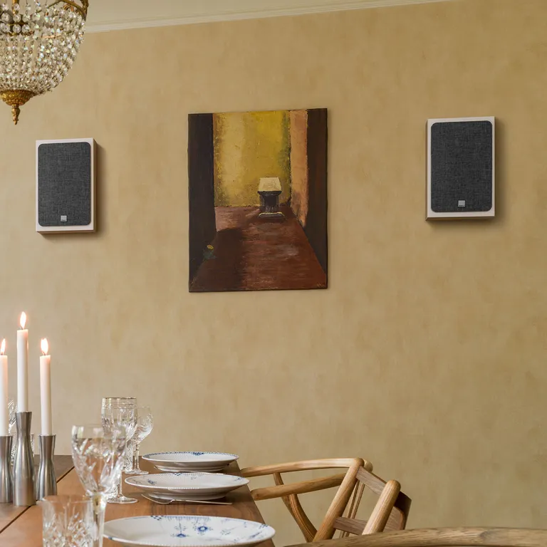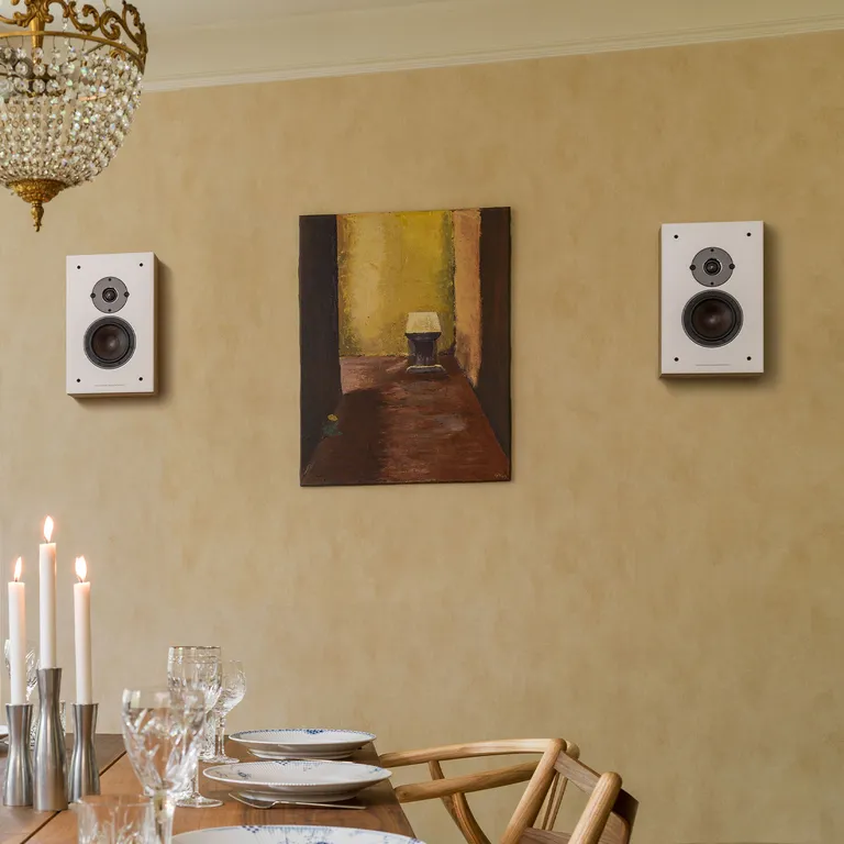 Kontrollsenteret i DALIs EQUI-systemer. Her samles alle musikksignaler og sendes trådløst videre til høyttalerne. Kan modul-utbygges.Les merDALI OBERON ON-WALL C Kompakt høyttaler - Aktive