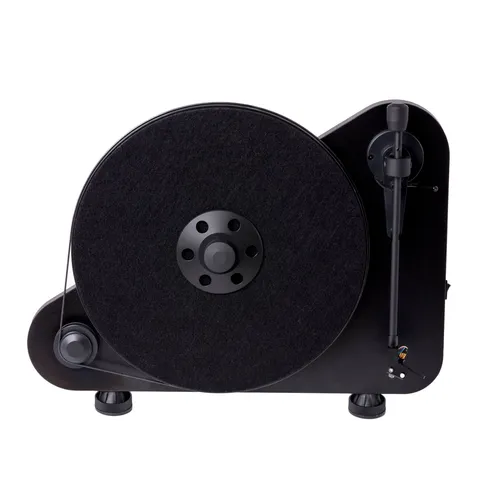 VT-E kombinerer old school analog lyd med et elegant og moderne design. Det unike designet for loddrett plassering på hylle eller vegg gjør den til noe virkelig ut over det vanlige. Dette er en platespiller som blir lagt merke til. Ikke minst når musikken spiller og vinylplaten roterer som en kunstinstallasjon i en hylle eller på veggen.