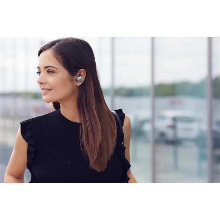 WF-1000X leverer et klart og dynamisk lydbilde, samtidig som den stenger ute bakgrunnsstøy. Støyreduksjonen har tre innstillinger for bakgrunnslyd til forskjellige situasjoner i hverdagen din: en som stenger ute all lyd, en der du hører trafikken og en, der du hører hva folk sier. Den tilhørende appen tilpasser støyreduksjonen etter situasjonen din og lar deg stille inn bakgrunnslyden etter ditt behov.