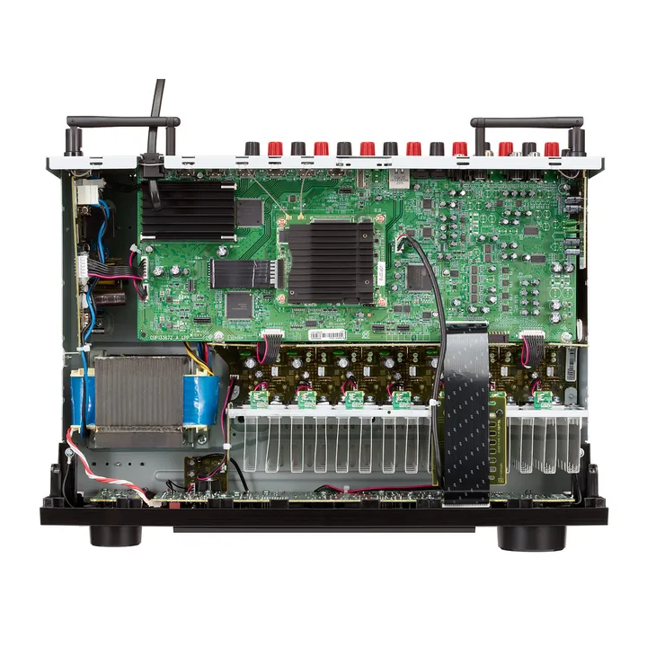 AVR-S770H er en ekte 7-kanals receiver, som er bygget opp med 7 identiske strømsterke analoge effektblokker. De forskjellige analoge og digitale seksjoner i forsterkeren er helt adskilt fra hverandre, og en rekke av separate strømforsyninger er med på å sikre en helt ren forsyningsstrøm til alle kretsløpene.