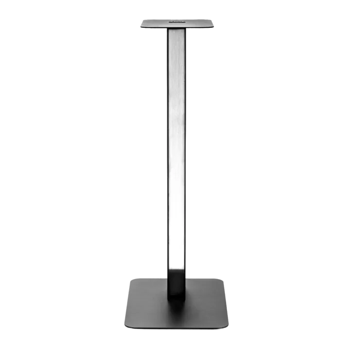 Essentials STATIV 62 er pulverlakkert i hardfør sort finish, og det følger med en elegant front i børstet aluminium, som du kan bruke hvis du ønsker den finishen. Om du foretrekker rent sort, lar du den bare bli i boksen. Du har mulighet for skjult kabelføring i søylen, og hvis du vil ha dine høyttalere helt urokkelig plassert, er topplaten utført med hull, slik at du kan skru høyttalerne fast.