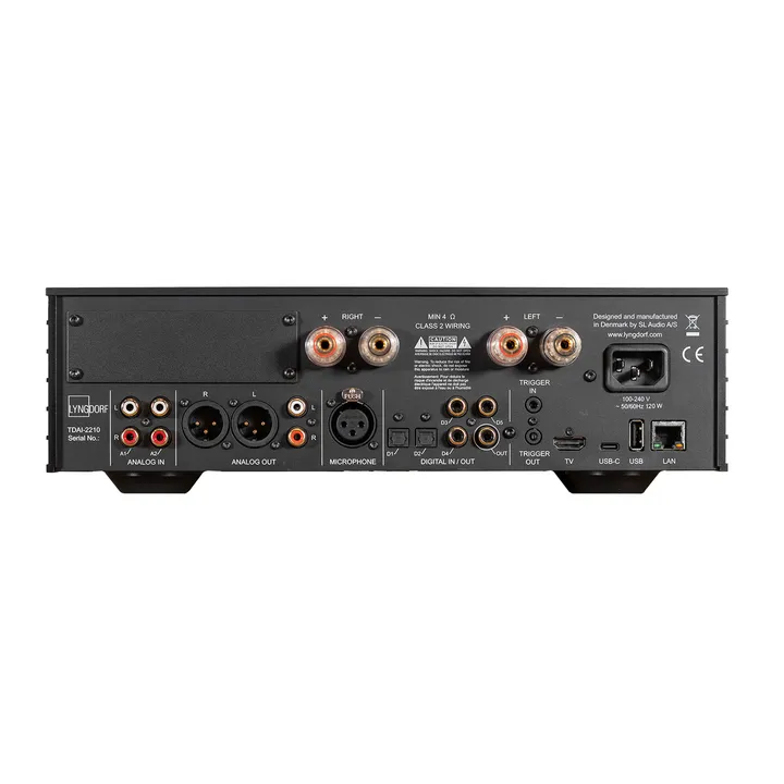 TDAI-2210 er designet og bygget hos Lyngdorf Audio i Danmark. Hver forsterker gjennomgår en 24-timers test der begge lydkanaler og alle inn-/utganger er i bruk. Først når apparatet oppfyller alle krav og spesifikasjoner, sendes det videre ut i verden. Det sikrer at du får maksimal ytelse, kvalitet og driftssikkerhet. Eventuelle innbyggingsmoduler kan velges fra start eller ettermonteres. Det er imidlertid mest økonomisk å bestille ønsket funksjonalitet med en gang.