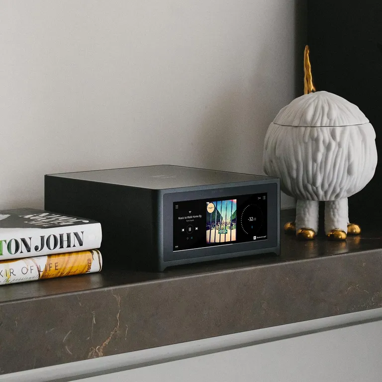 Hvis du føler for det, kan du også uten problemer plassere M10 V3 ute av syne, f.eks. i et hi-fi-møbel fra unnu eller clic. Her kan du fremdeles gjøre all betjeningen i den lekre Bluesound appen, eller styre de grunnleggende funksjonene fra den medfølgende IR-fjernkontrollen, hvis du har valgt stoffdører i møbelet ditt.