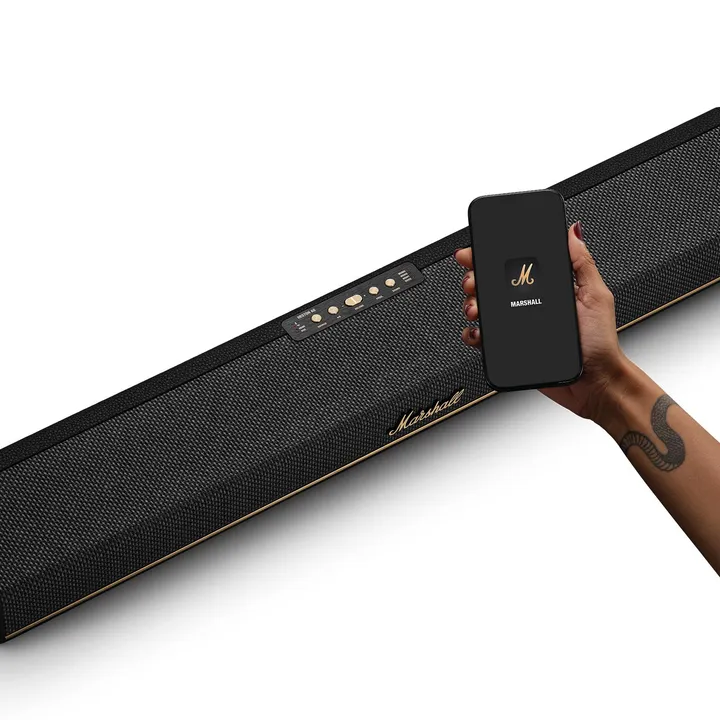 Oppsettet av Heston 60 er raskt gjort, og via den dedikerte Marshall appen og de innebyggede kalibreringsmikrofonene kan lydplanken én gang for alle optimalisere lyden til rommet ditt og den valgte plasseringen. Dermed er du klar til å nyte film og serier med 3D-surroundfølelse, og en imponerende fyldig lyd. Hvis du vil ha enda mer bunn og fysisk trykk i lyden, kan du supplere med Marshalls egen trådløse subwoofer, Heston Sub 200.