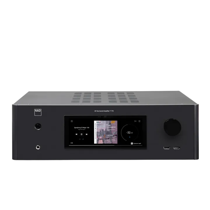 NAD T 778 – 9.1 kanals Hybrid Digital hjemmekinoreceiver med 4K/UHD-video, Dolby Atmos, DTS:X, Dirac Live, integrert Bluesound og superelegant touch-fargedisplay