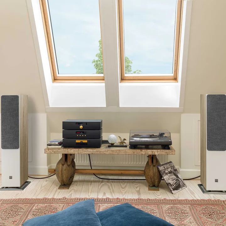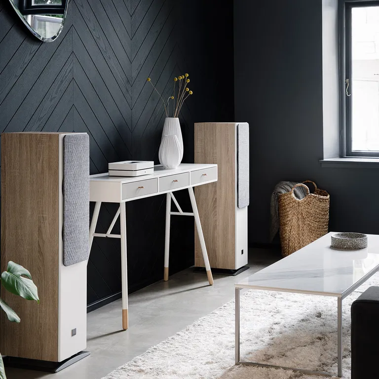 Det følger med både gummiføtter og solide spikes, slik at høyttaleren alltid kan ha optimal kontakt med underlaget. Den solide aluminiumsfoten og de elegant avrundede stoffrontene får OBERON 7 til å gli harmonisk inn i en moderne innredning. Du skal slite med å finne noe bedre til denne prisen.