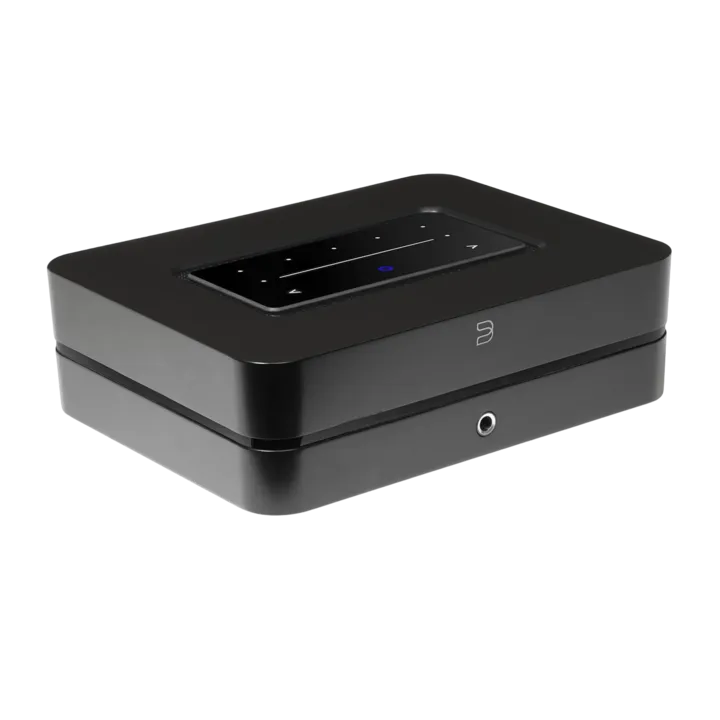 Når du ikke har BluOS-appen for hånden, kan du bruke det stilige touchpanelet i glass på toppen til grunnleggende styring (play/pause/volum). Panelet har bevegelsessensor og lyser opp automatisk når hånden nærmer seg. Du får også fem personlige forhåndsvalg (presets), så favorittkanalen din på nettradio eller spillelisten bare er ett trykk unna.