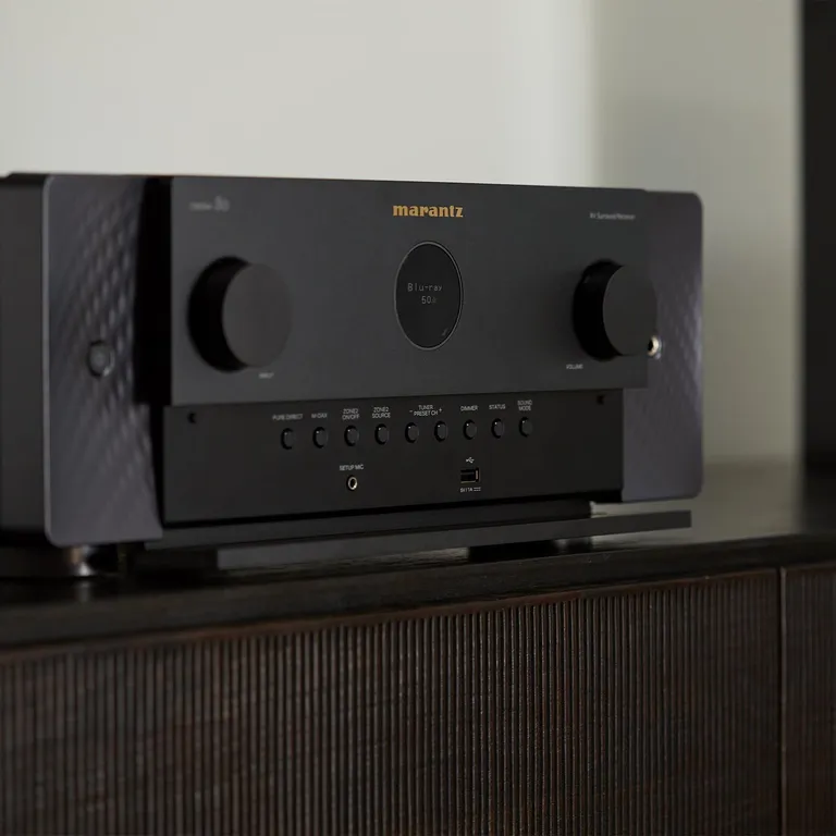 Marantz CINEMA 50 fås i flere finisher. Bak-belyst fjernkontroll følger med.