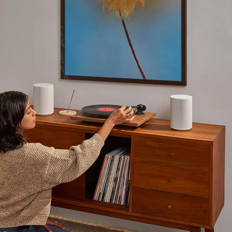 Sonos er et genialt multiroms musikksystem, som kan sende en hel verden av musikk ut i hvert hjørne av hjemmet ditt. Stue, kjøkken, soverom, kontor, barnerom, bad – det finnes en musikkspiller eller trådløs høyttaler fra Sonos til ethvert behov. Oppsettet av Sonos klarer alle på et øyeblikk, og siden du ikke må bygge noe inn i veggen kan du ta med deg hele stasen hvis du flytter.