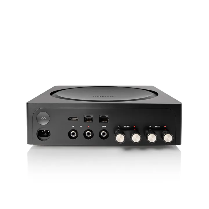 Amp er en kraftig, trådløs forsterker som med sine 2 x 125 watt kan drive et par virkelig gode hi-fi-høyttalere. Du kan velge akkurat den høyttalermodellen som måtte passe lommeboka og innredningen din, og du får detaljer, dynamikk og stereobilde på høyt nivå. En virkelig god løsning til stua, ikke minst med tanke på at Amp også kan få det beste ut av TV-lyden din.