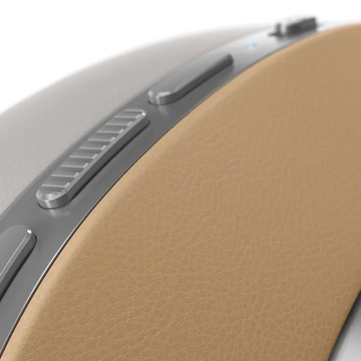 PX8 er hodetelefoner i luksusklassen, og dette skal selvfølgelig også gjenspeiles i alle synlige detaljer. Hodebøylen er solid laget av aluminium, og kanten på ørepluggenes ovale logoplater er elegant avfaset med diamantsliping. Både øreputer og hodebånd er dekket med silkemykt skinn og innvendig polstret med minneskum, som følger hodets konturer og gir både en behagelig og presis passform.