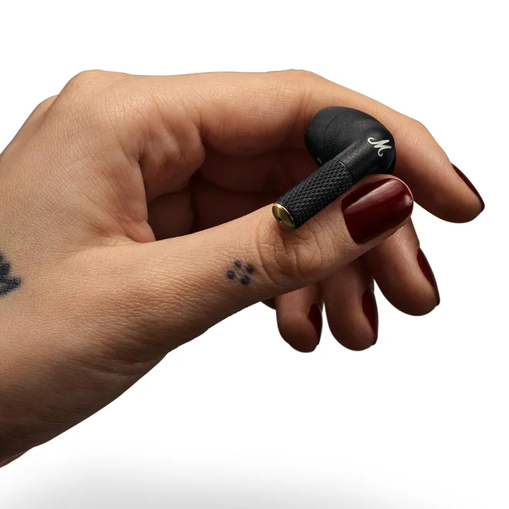 Minor IV er nydelig designet i det ikoniske Marshall-utseende, og med det ergonomiske designet sitter øreproppene dine sikkert og komfortabelt i øregangen, uansett om du er på farten, på jobb eller hjemme i sofaen. Konstruksjonen uten gummi-propper gir deg en god følelse av hva som foregår rundt deg, og gjør samtaler ekstra behagelige, fordi du ungår følelsen av å sitte i en osteklokke mens du snakker i telefon. Marshall Minor IV tåler støv, vannsprut, regn og svette, så du kan også bruke de på sykkelturen og i treningslokalet.