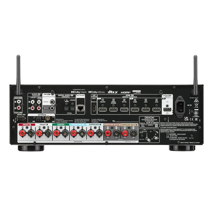 Denon AVR-X1800H – 7-kanaler med 80 hi-fi watt, 8K / HDMI 2.1, HEOS multirom, Dolby Atmos, DTS:X og toveis Bluetooth