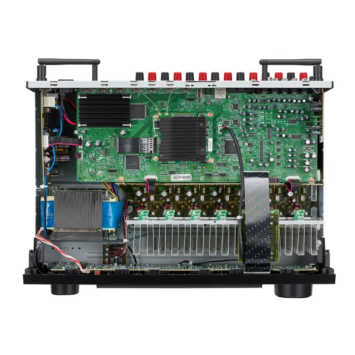 AVR-X1800H er en skikkelig 7-kanals receiver, som er bygget opp med 7 identiske strømsterke analoge effektblokker. De forskjellige analoge og digitale seksjoner i forsterkeren er helt adskilt fra hverandre, og en rekke separate strømforsyninger er med på å sikre en helt ren forsyningsstrøm til alle kretsløp.