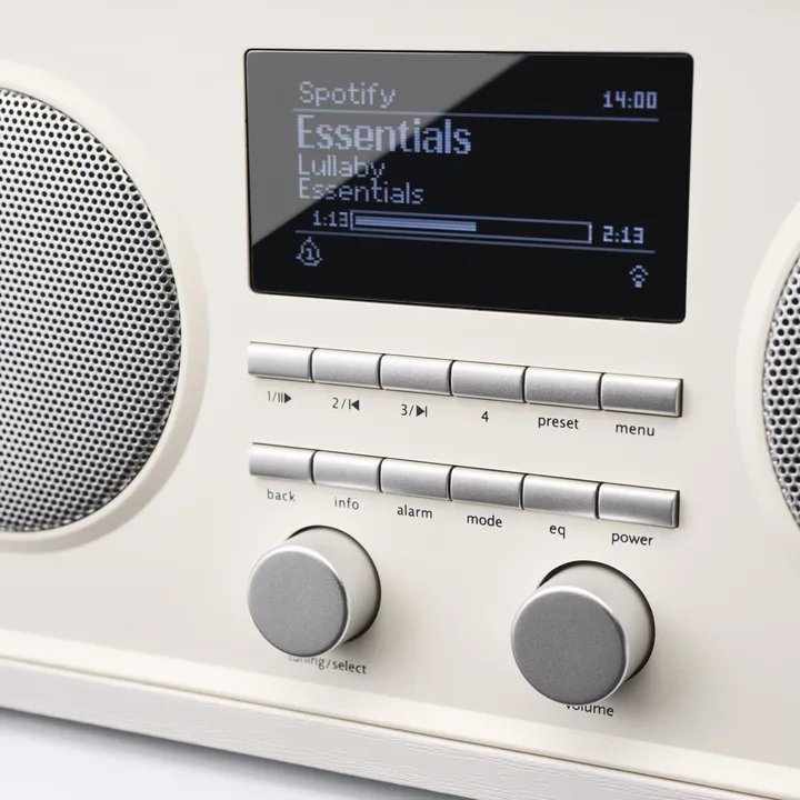 RADIO3 er den komplette bordradio med både internetradio, Spotify Connect, Bluetooth, DAB+ og FM. Her kan du lytte til alle tenkelige radiostasjoner fra hele verden, du kan velge mellom mange millioner musikkspor direkte fra din Spotify-app, og alt det andre kan du strømme trådløst fra smarttelefonen din via Bluetooth.