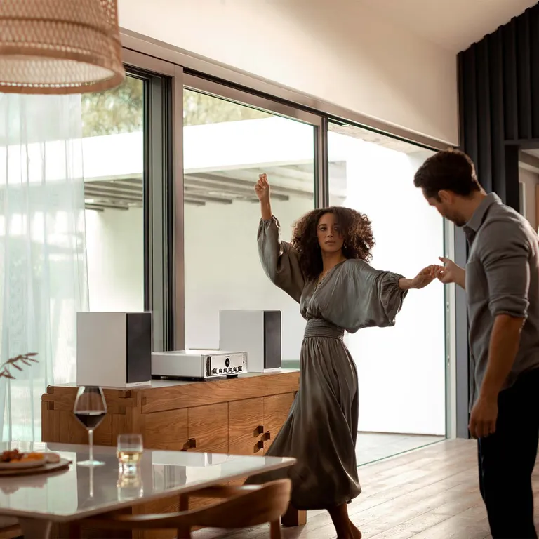 Med MODEL 40n kan du koble lyden fra TV i optimal digital kvalitet via HDMI, og du kan styre lydstyrke m.m. fra din eksisterende TV-fjernkontroll. Det gir deg en dramatisk bedre TV-opplevelse, uansett om det står film på menyen, serier eller konserter. Anlegget slår seg på og av helt automatisk sammen med TV, så du overhodet ikke trenger å bekymre deg for betjeningen i din daglige bruk. Dermed blir det ikke mye enklere eller mer elegant.