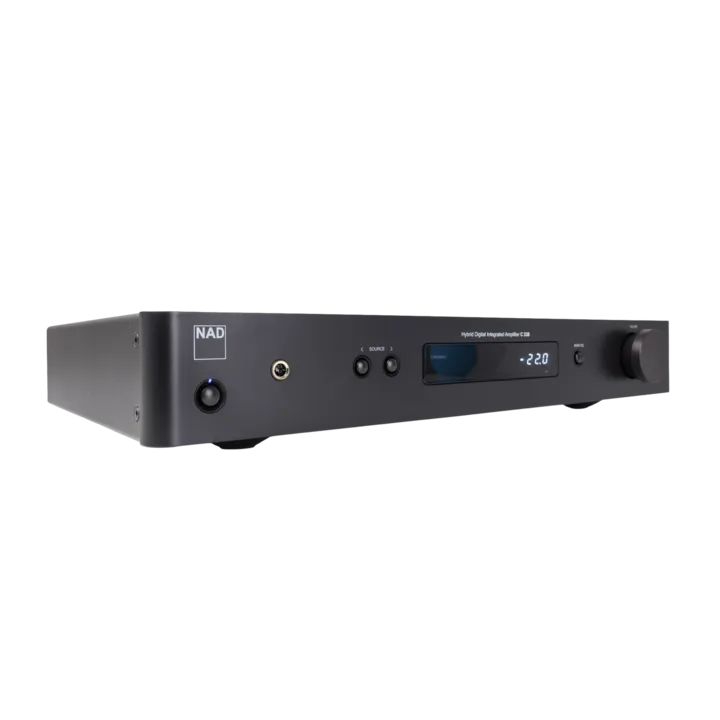 2 x 50 seriøse watt kan i beste NAD-tradisjon drive seriøse hi-fi-høyttalere med overbevisning, og det kompakte designet med frontdisplay gir forsterkeren et både rått og moderne visuelt uttrykk. C338 har de vanlige digitale lydtilkoblingene (coaxial, optisk), samt analoge innganger, inkludert platespiller (MM). Du får også en hodetelefonutgang som er drevet av en separat, innebygget, høykvalitets hodetelefonforsterker.