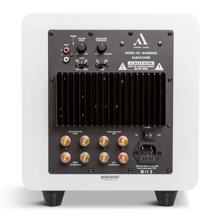 BASS8 Mk2 er ikke en “boombox”, men derimot et kjærkomment supplement til mindre høyttalere som kan ha godt av litt hjelp på de aller dypeste frekvensene.. Den vil være et selvsagt valg til et satellittsystem som f.eks. Argon ALTO5 Mk2. Du kan selvsagt også bruke BASS8 Mk2 i kombinasjon med mindre kvalitetshøyttalere fra andre produsenter.