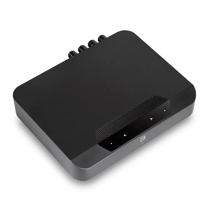 - Kan settes opp til å drive et par kablede bakhøyttalere i surround-oppsett med Bluesound SOUNDBAR eller POWERNODE (N330)