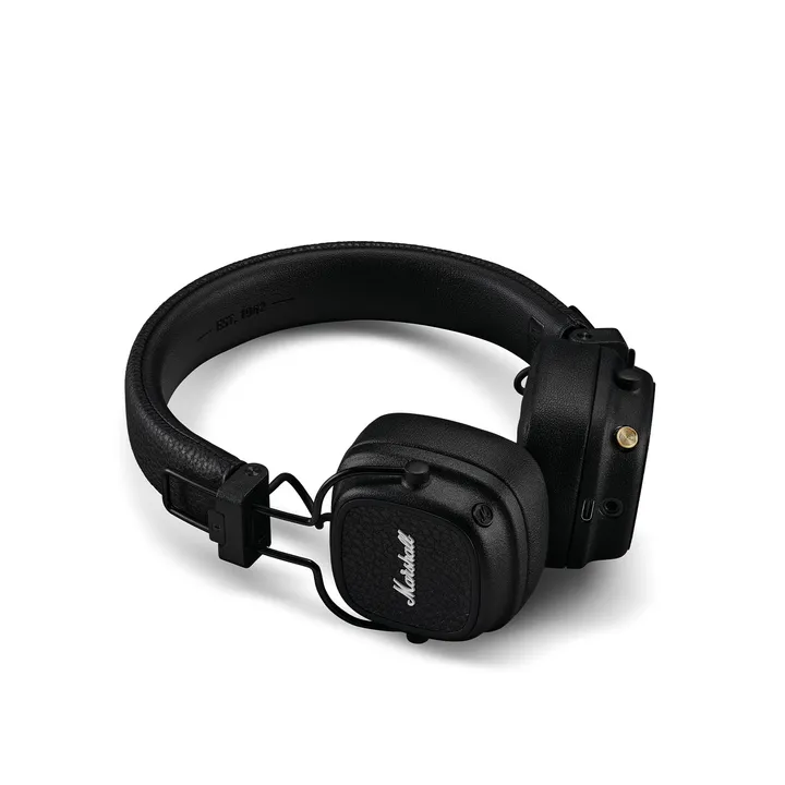 Major V er lekkert designet med den ikoniske Marshall-logoen på sidene. Formen minner om de tidligere Major-generasjonene, som du nesten ikke kan unngå å se opp til flere av på en tur gjennom byen. I denne generasjonen er batteritiden blitt oppgradert til imponerende 100 timer, og komforten er stadig på topp med tykke øreputer i kunstlær. Når du skal ut på tur, kan du klappe Marshall Major V sammen, så de passer enkelt ned i ryggsekken.