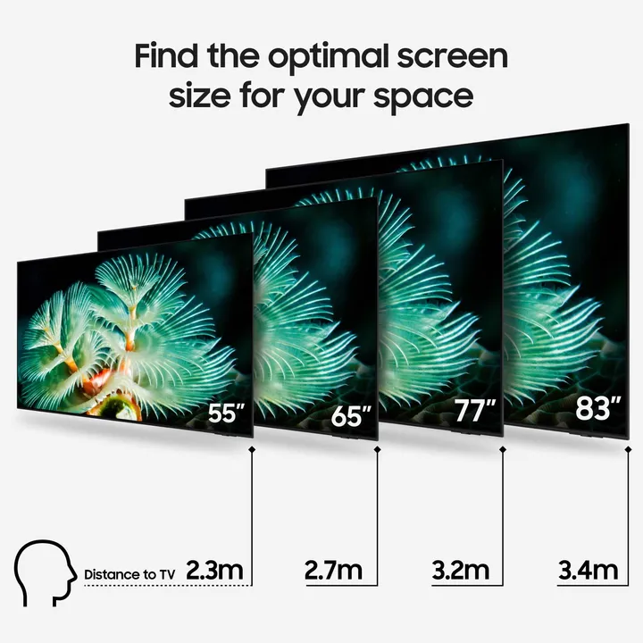 Det eksklusive OLED-panelet på S95F er bare utrolige 1,1 cm tykt og har en svært bred innsynsvinkel, så hele familien kan nyte det flotte bildet, selv om de ikke sitter midt foran skjermen. Den avanserte Glare Free-antirefleksbehandlingen reduserer refleksjoner fra vinduer og lamper, så du får et klart bilde uten forstyrrende gjenskinn.