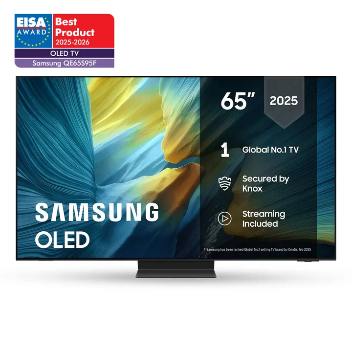 De små innebygde høyttalerne i S95F kan ikke følge med det flotte bildet. Vil du ha maksimal opplevelse av film, serier, sport og spill, trenger du en ordentlig hi-fi-løsning. Det finnes mange enkle og prisgunstige alternativer. Koble til et par gode aktive høyttalere, et musikk anlegg eller en ekte Dolby Atmos-hjemmekino via HDMI eARC, og nyt et realistisk lydbilde med dybde, klarhet og detaljer – akkurat slik skaperne har ment det.