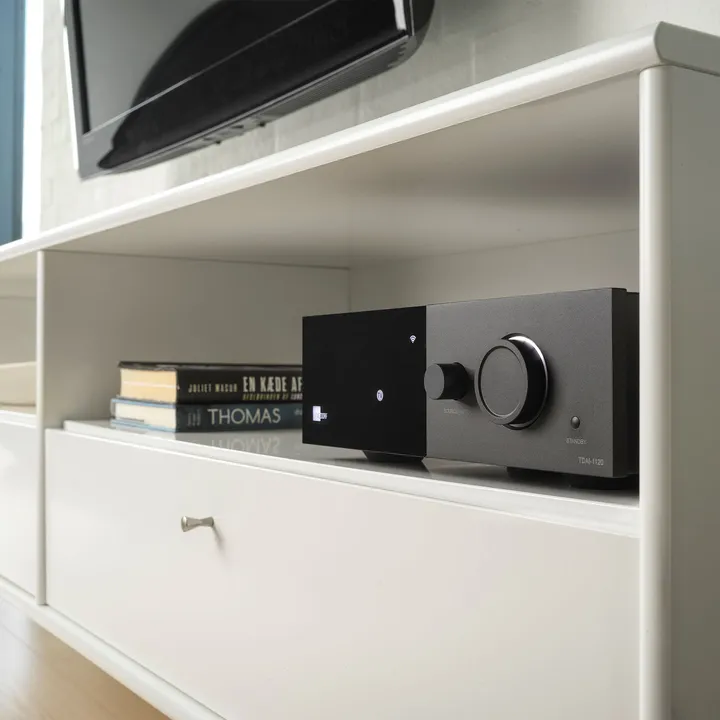 Den integrerte mediespilleren i TDAI-1120 gir deg nesten alle streamingmuligheter du kan drømme om. Du får Bluetooth til de aller enkleste oppgavene, men det er bare begynnelsen. Med Spotify Connect kan du spille all verdens musikk fra Spotify-appen du kjenner fra før. Og med Chromecast built-in trenger du bare å trykke på et ikon i den foretrukne medie-appen din, så spiller musikken i stua, uten at du tapper batteriet i telefonen din som med Bluetooth.
