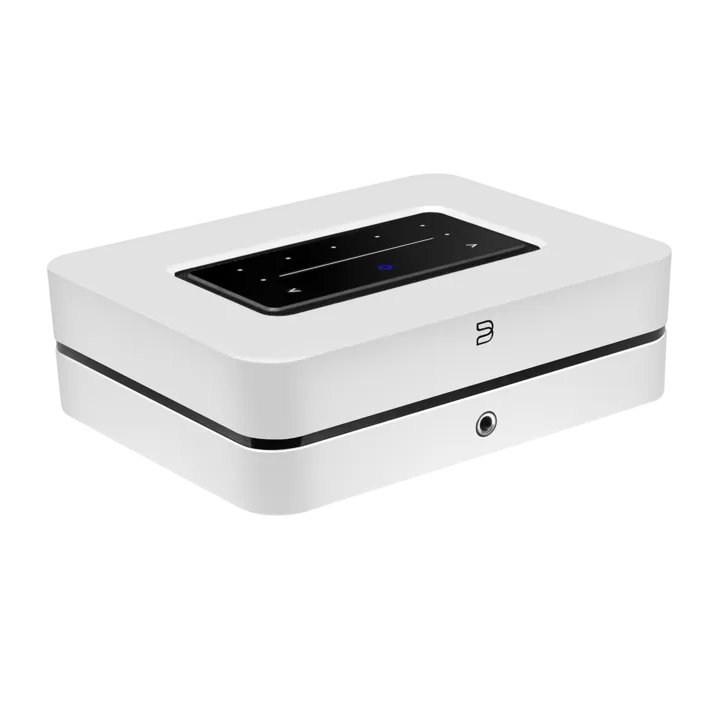 Når du ikke har BluOS-appen for hånden, kan du bruke det stilige touchpanelet i glass på toppen til grunnleggende styring (play/pause/volum). Panelet har bevegelsessensor og lyser opp automatisk når hånden nærmer seg. Du får også fem personlige forhåndsvalg (presets), så favorittkanalen din på nettradio eller spillelisten bare er ett trykk unna.