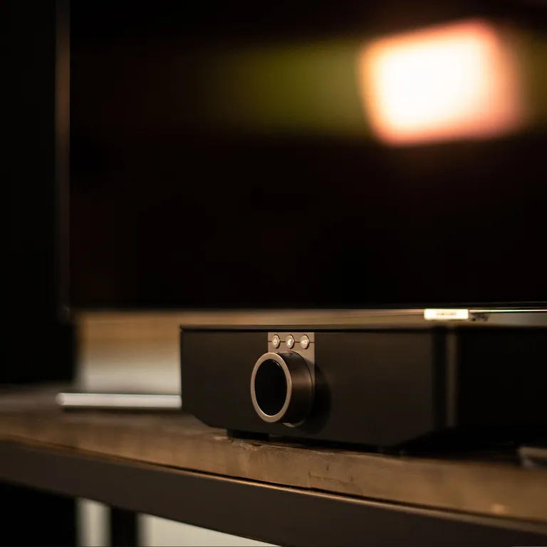 Den medfølgende fjernkontrollen er Bluetooth-basert, slik at du kan skjule SOUND HUB hvis du ønsker det, for eksempel bak en dør i et hi-fi-møbel. Men den er heldigvis så elegant designet at den absolutt tåler å bli vist frem i et stilrent og moderne boligmiljø.