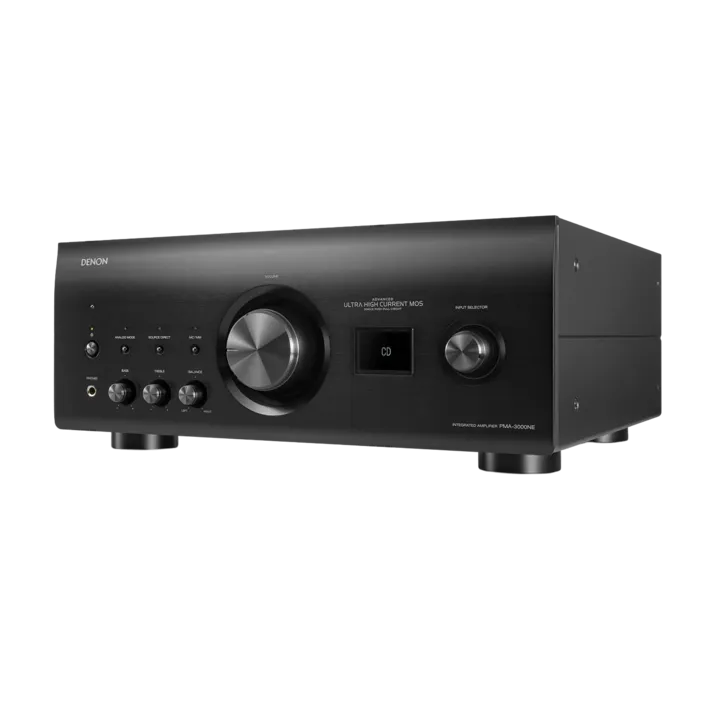 På overflaten ligner PMA-3000NE ganske mye på sin forgjenger PMA-2500NE, men et utall av de tekniske løsningene fra kretsløpslayout til komponentvalg, tilkoblingsmetoder og tuning av lydkvalitet er basert på Denons overdådige jubileumsmodell PMA-A110, i enkelte tilfeller til og med i forbedret form. Doble transformatorer, Ultra AL32 Processing, superpresis digitalt styrt volumkontroll og hele fire innebyggede audiofile D/A-konvertere er bare noen få av de mange godsakene, du finner i denne fantastiske stereoforsterkeren.