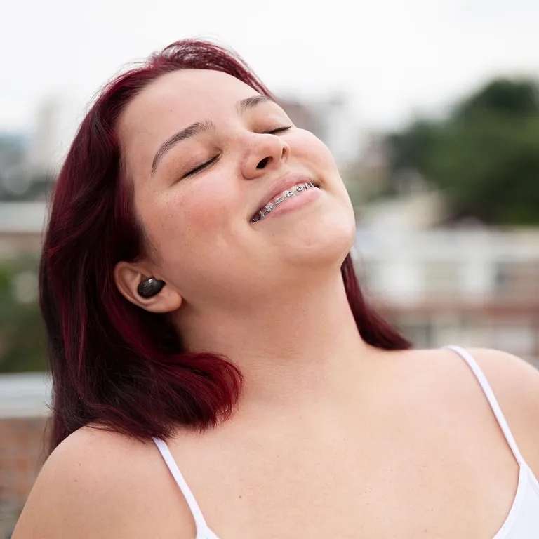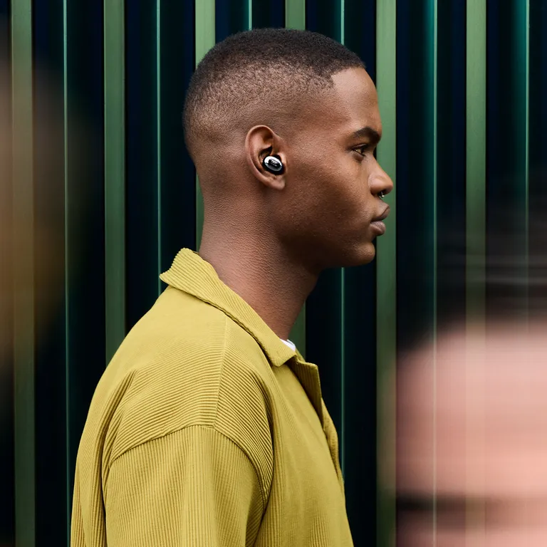 To «beamforming» ytre mikrofoner på hver propp fanger opp stemmen din og leverer den så tydelig som mulig, mens en indre mikrofon isolerer støy. Det vindtette designet betyr at de du snakker med ikke hører forvrengning, selv om du er utendørs på en vindfull dag. Call Equalizer hjelper deg med å kontrollere nøyaktig hvordan du låter for andre, og hvordan du vil ha dem til å låte for deg.