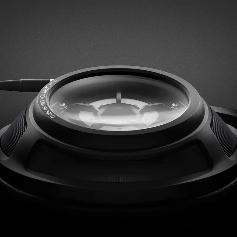 Lydbølgene fra baksiden på membranen reflekteres av den harde glassflaten og sendes kontrollert tilbake inn i ringformede dempere som er plassert rundt driveren. Disse demperne eliminerer uønsket lydpåvirkning over hele frekvensområdet fra 6 til 48.000 Hz, og resultatet er en enestående klar og romlig gjengivelse som ikke kan matches av andre lukkede hodetelefoner på markedet.
