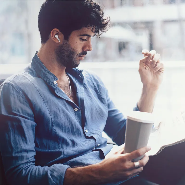Via «beamforming» kan den innebyggede signalprosessoren optimalisere lyden fra alle mikrofonene til å gi deg imponerende klare og støyfrie samtaler, selv i støyfyllte omgivelser. Du kan også bruke øreproppene enkeltvis (Mono Mode), og det kan være riktig så hendig, ikke minst til samtaler.
