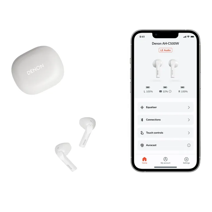 AH-C500W har de samme avanserte drivere som storebror AH-C840NCW, og lyden er derfor imponerende naturlig og musikalsk, spesielt sammenlignet med mange konkurrerende åpne modeller. Øreproppene sitter lett og komfortabelt, og du får brukervennlig touchkontrol, inklusive smart pausefunksjon, når du tar en ørepropp ut av øret. Hvis du vil ha mer bass eller, på andre måter justere lyden, kan du enkelt gjøre det via EQ-funksjonen i den nye Denon Headphones appen.