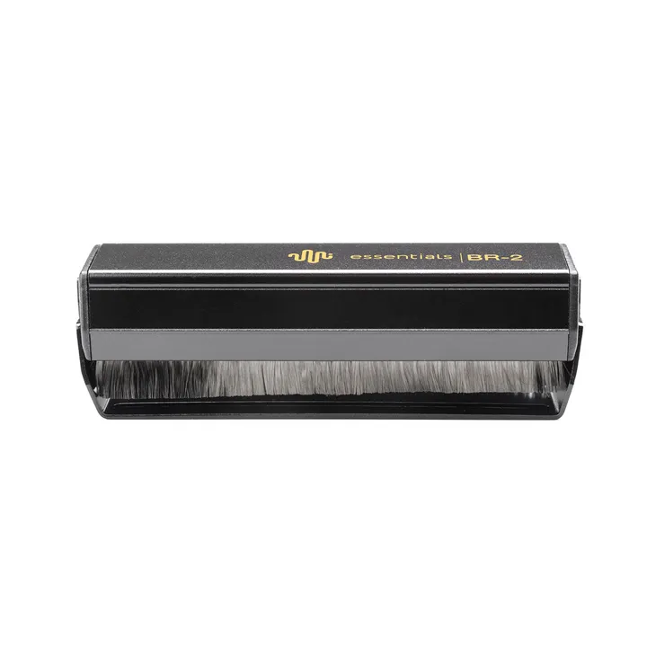 Essentials BR2 er en lekker, effektiv og skånsom platebørste med ultrafine kullfiberhår, som går helt ned i bunnen av rillene uten å danne statisk elektrisitet. Fløyelsputen i midten samler opp støvet.