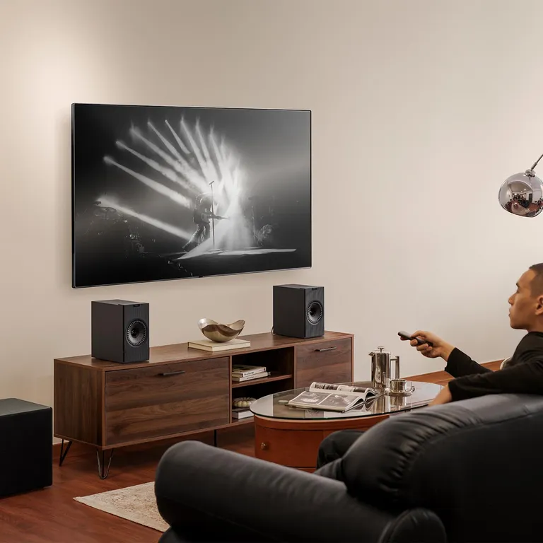 Via kabel kan du koble til tradisjonelle musikkilder som f.eks. CD-spiller eller platespiller (RIAA-forsterker er innebygd). Du kan koble til TV-lyd via enten HDMI eller optisk inngang, og hver høyttaler har utgang for subwoofer, så du kan få den virkelig store lyden, også i store lytterom. Til KEFs egne subwoofere kan du til og med få en dedikert trådløs adapter (ekstrautstyr), så du slipper enda en kabel.