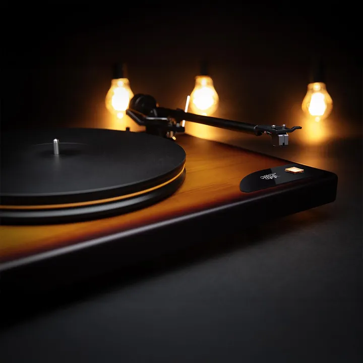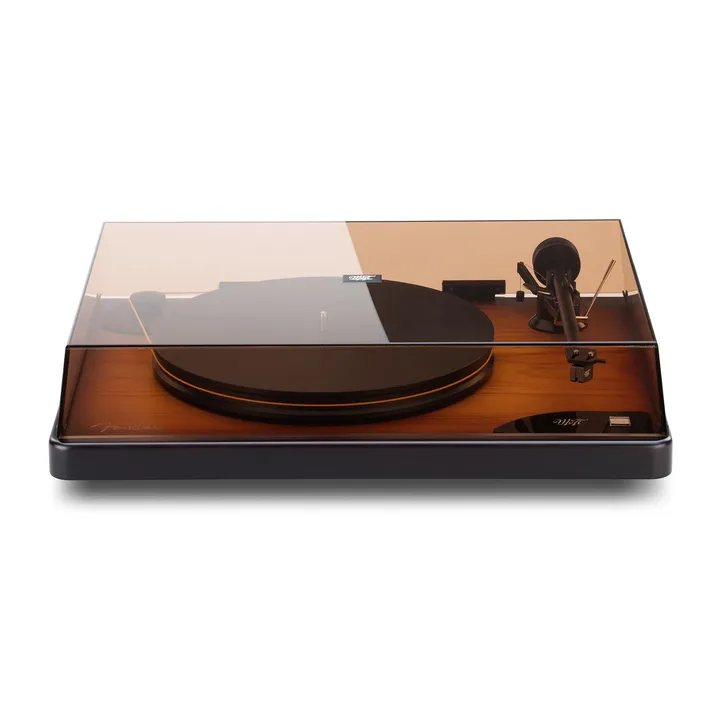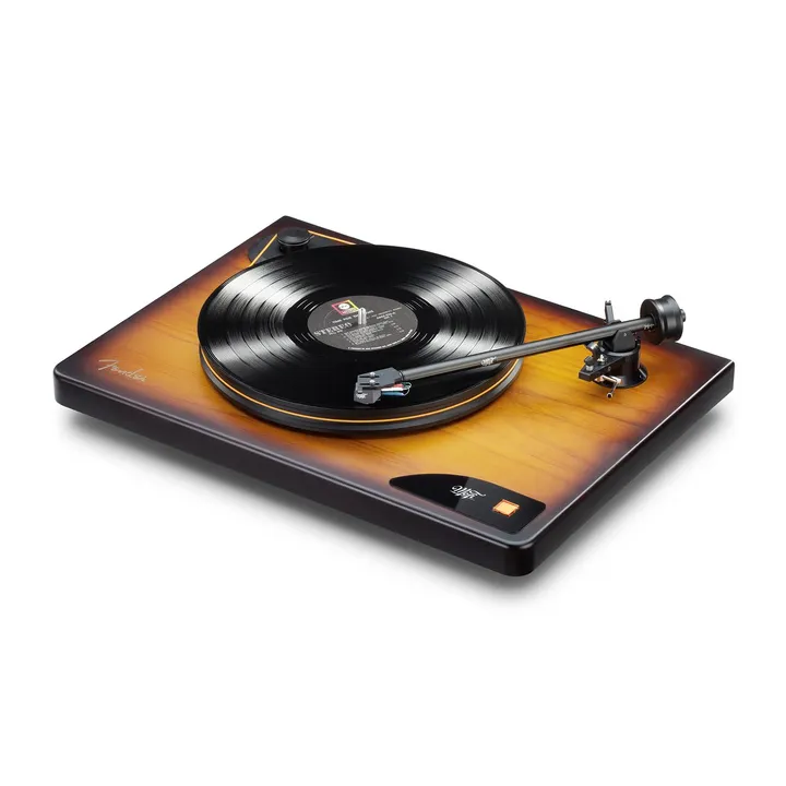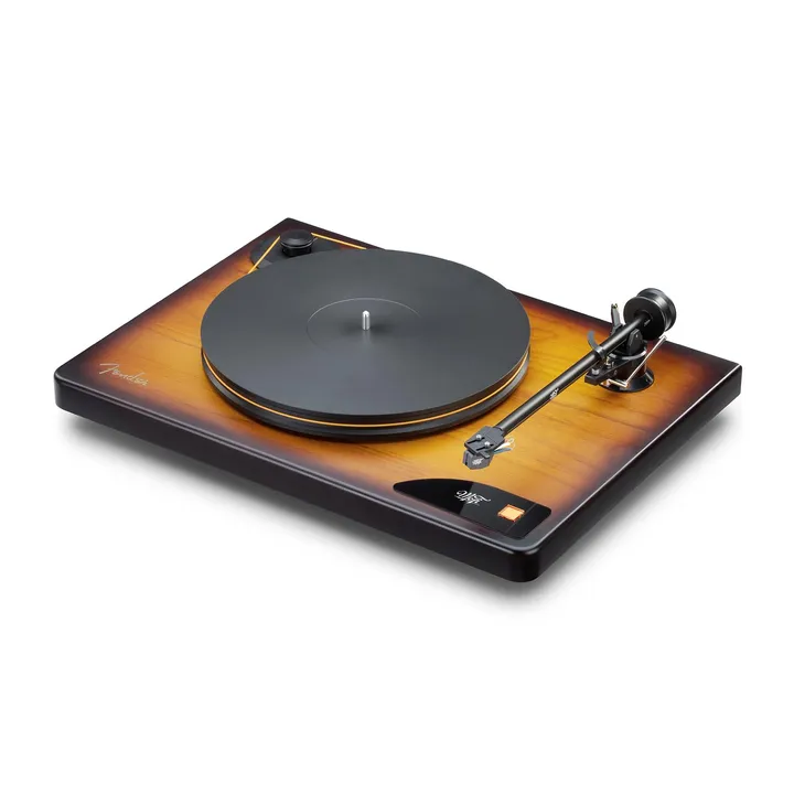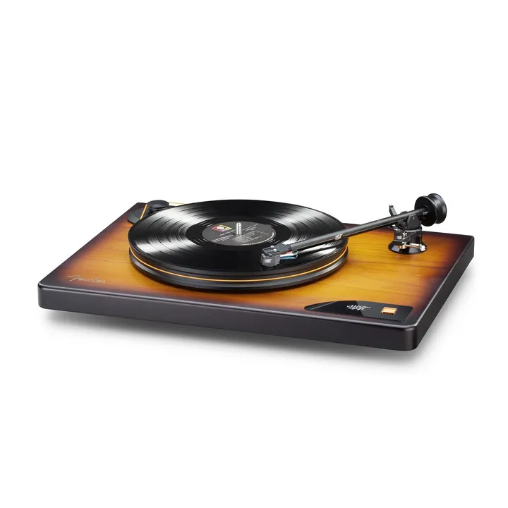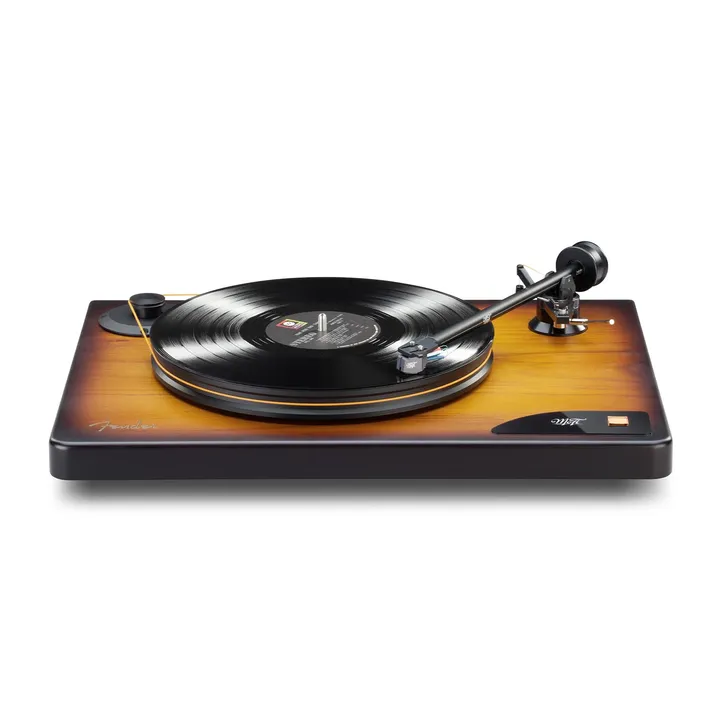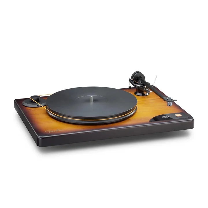 MoFi x Fender American Vintage Turntable er en unik high-end platespiller som vil få hjertet til å banke hos enhver musikkelsker med rock og rytmisk musikk i blodet. Den dypt glødende tretonede Sunburst-finishen er nemlig den samme som på de originale og ikoniske Fender Telecaster- og Stratocaster-gitarene.