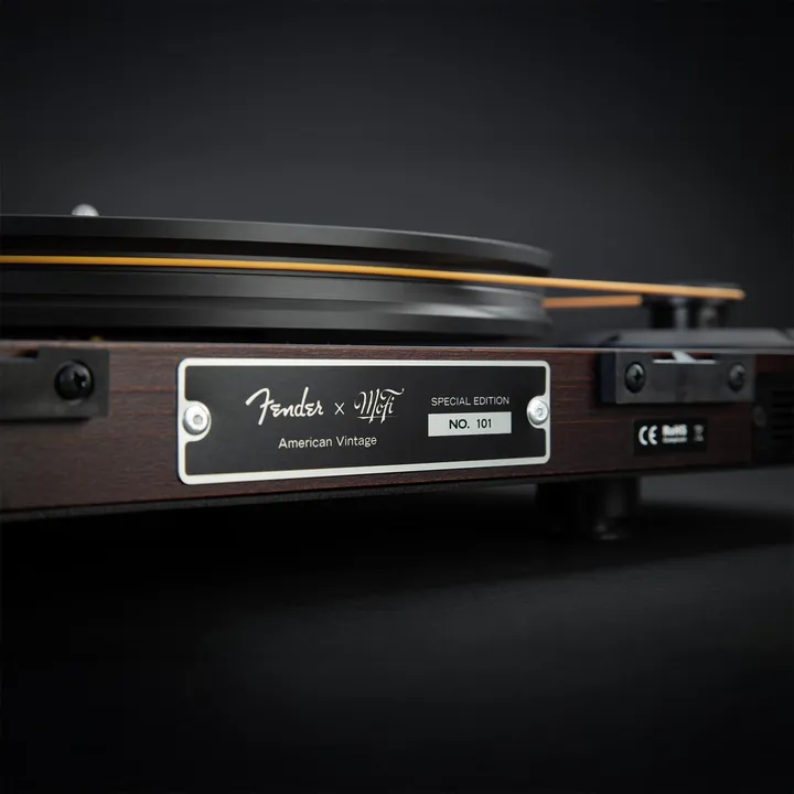 På MoFi x Fender American Vintage Turntable er den tunge Delrin-platetallerkenen hele 33 mm tykk og ekstra resonansdød for å skape det helt rene bakteppet for musikken. Tonearmens kabelføring er fra spesialisten Cardas Audio, og plinten er laget i det samme amerikanske or-treet som gitarene fra Fender. Plinten er til og med spesialtunet av HRS, slik at PrecisionDeck låter enda bedre enn den EISA-vinnende UltraDeck som har levert den tekniske plattformen til dette lekre samlerobjektet.