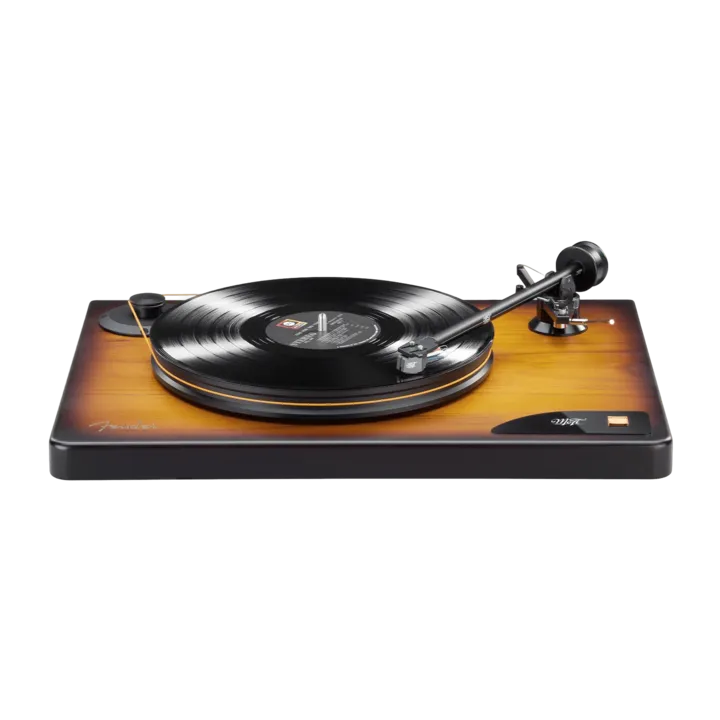 MoFi x Fender American Vintage Turntable er en unik high-end platespiller som vil få hjertet til å banke hos enhver musikkelsker med rock og rytmisk musikk i blodet. Den dypt glødende tretonede Sunburst-finishen er nemlig den samme som på de originale og ikoniske Fender Telecaster- og Stratocaster-gitarene.