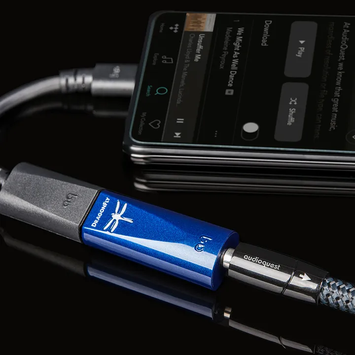 Portable DAC-er har man sett før, først og fremst for bruk med bærbare datamaskiner. Det revolusjonerende med DragonFly Cobalt er at den også kan brukes direkte på smarttelefonen din. Ved hjelp av et splitter nytt brikkesett har AudioQuest redusert energiforbruket til et enestående lavt nivå som åpner for helt nye muligheter. Nå kan du endelig få full lydkvalitet fra smarttelefonen din, og du kan trygt koble til et par virkelig seriøse hi-fi-hodetelefoner – DragonFly Cobalt skal nok leve opp til kravene.