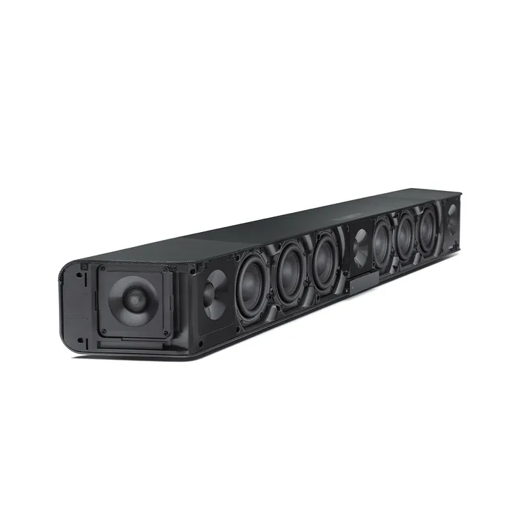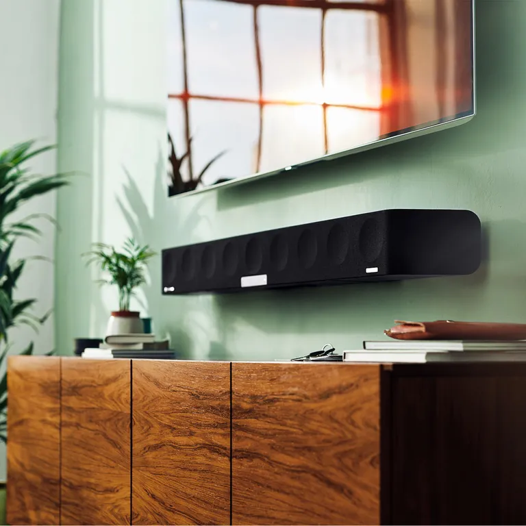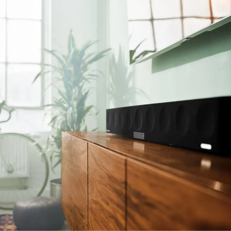 Til de høye frekvensene får du hele fem raffinerte diskanter med membran i aluminium, fordelt med tre i front og to sidevendte. Disse suppleres av to oppovervendte 3,5” fulltone-elementer som ved hjelp av AMBEO-signalbehandlingen kan gi en virtuell høydefølelse i lyden uten at du trenger å installere høyttalere i taket.