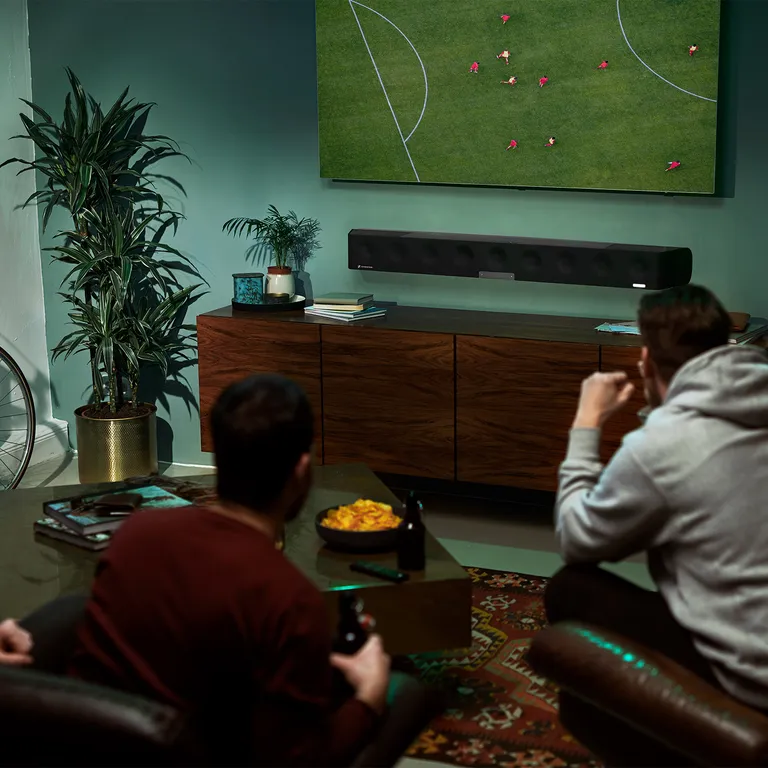 Oppsettet gjør du én gang for alle med den dedikerte Smart Control-appen og den inkluderte kalibreringsmikrofonen. Når dette er unnagjort er du klar for den unike AMBEO-opplevelsen: overbevisende 3D-lyd som i en skikkelig hjemmekino, forbløffende dyp og kraftig bass samt en grunnleggende lydkvalitet som også gjør musikklytting i stereo til en ren fornøyelse.
