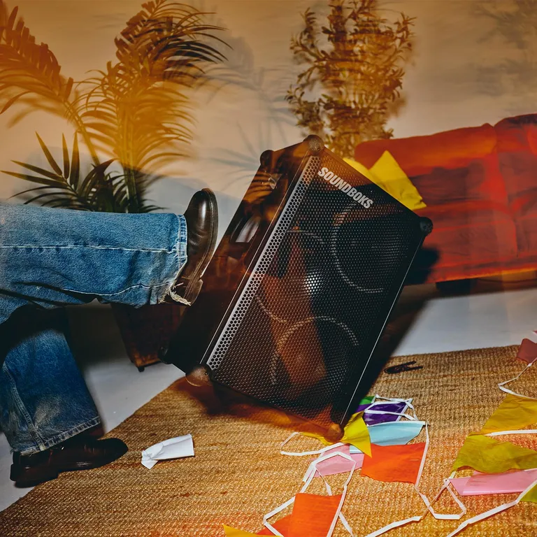 Utover den oppgraderte lydkvaliteten får du nå også lengre batteritid på fullt volum, og det er blitt superenkelt å demontere frontgitteret, så du kan gi SOUNDBOKS 4-en din et nytt utseende, som kan gjøre selv Banksy misunnelig. Det er også et hull gjennom høyttaleren som er med på å gi en fetere bass, men hullet er også perfekt for å ta noen fete bilder til Instagram, som du kan imponere vennene dine med.